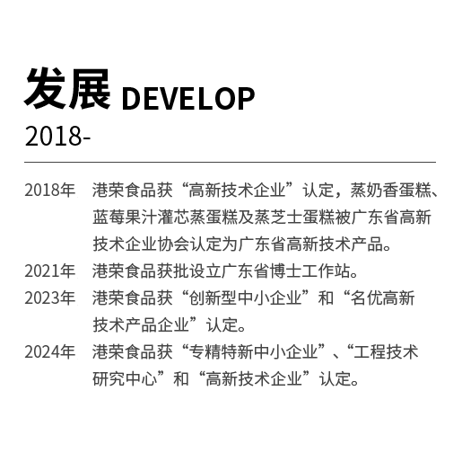 作為率先在國(guó)內(nèi)研發(fā)出蒸蛋糕的品牌,港榮食品深信產(chǎn)品是企業(yè)的根本,一直以來(lái)也致力于產(chǎn)品研發(fā)和技術(shù)創(chuàng)新。以此推出了以蒸奶香蛋糕為首的蒸系列蛋糕,更創(chuàng)新性地推出了下蒸上烤的蒸芝士蛋糕。“誠(chéng)信、健康、創(chuàng)新、時(shí)尚”是港榮的經(jīng)營(yíng)理念,也會(huì)繼續(xù)努力為廣大消費(fèi)者提供更優(yōu)質(zhì)的食品。